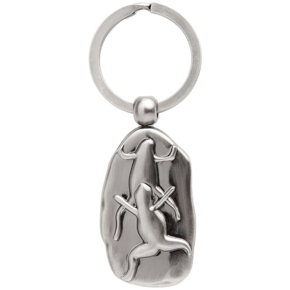 8.5 cm x 3.5 cm with antique chrome-plated ring with logo on the back in a gift box (11 cm x 5 cm)