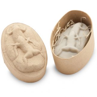Edle, geformte Pflanzenöl-Seife in Geschenkbox mit geprägtem Ohrwurmkäfer oder Frösche in Holzwolle gebettet.